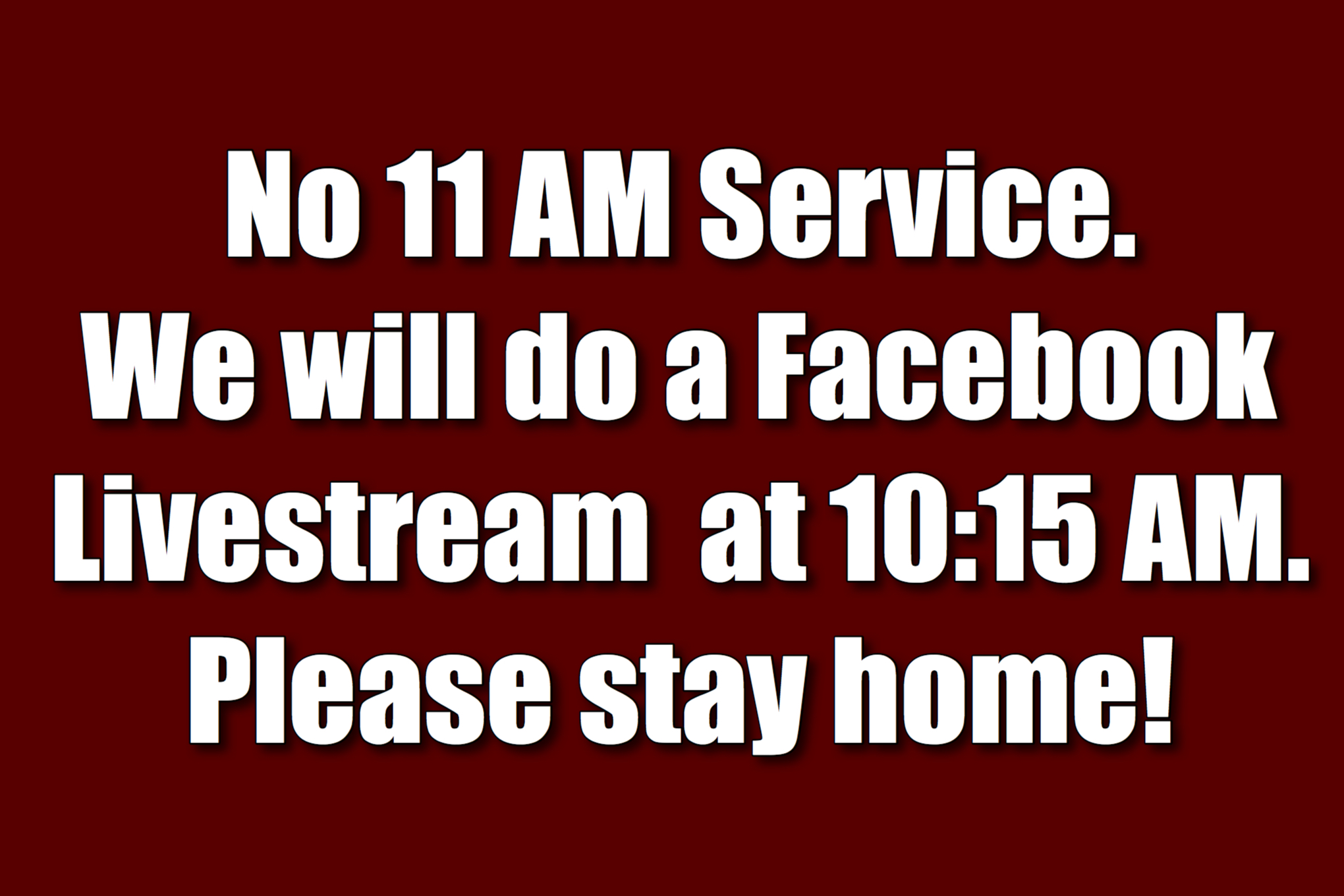 FeaturedNo 11AM Service. Facebook Live @10:15AM